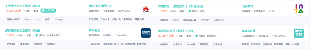 人才缺口大,0-3年经验渗透测试人员年薪可达20w-50w